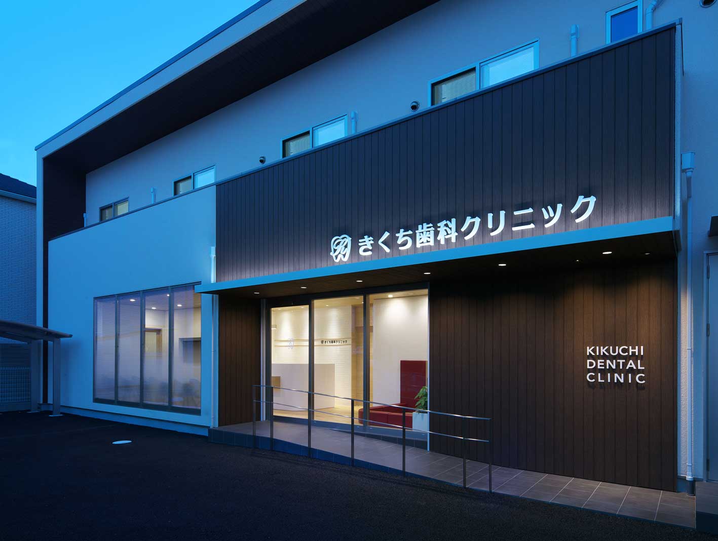 住宅街の中に佇むきくち歯科クリニックは、訪れる人に安心感と信頼を感じてもらえるよう、“ナチュラル”と“クリーン”をテーマにデザインされています。