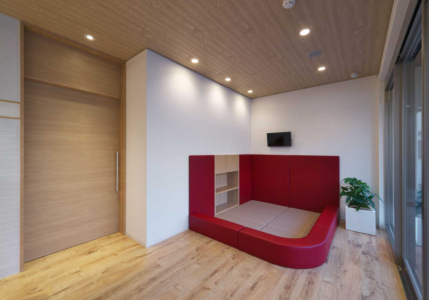 木の温かみと明るい照明が調和するキッズスペース。
