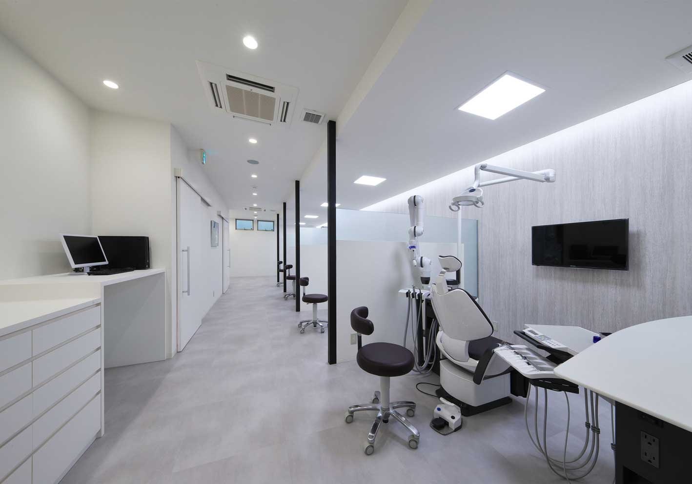白を基調にした明るい診療ユニットスペースは、清潔感と快適性を両立。